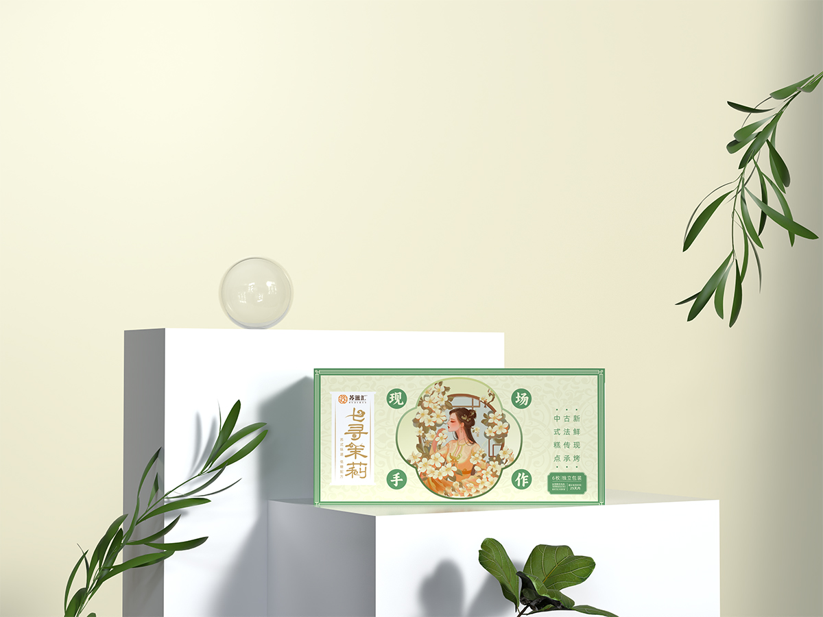 極地視覺為蘇滋味打造四款包裝系列分別為七仙女糕點包裝設(shè)計系列、七尋茉莉糕點包裝設(shè)計系列、荷塘月色糕點包裝設(shè)計系列、桃酥系列包裝設(shè)計等。