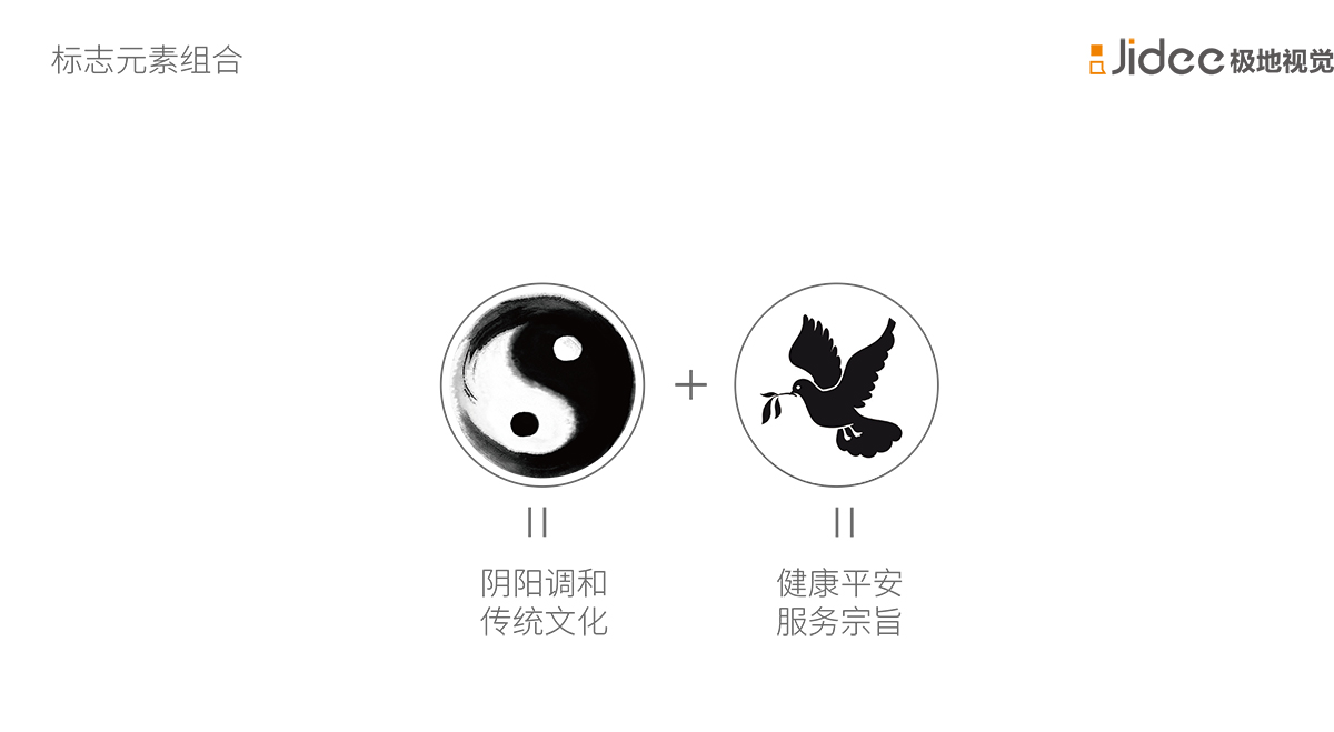 ·取自太極異形而來,強調(diào)中醫(yī)的陰陽結(jié)合,中醫(yī)運用陰陽對立統(tǒng)一的觀念來闡述人體