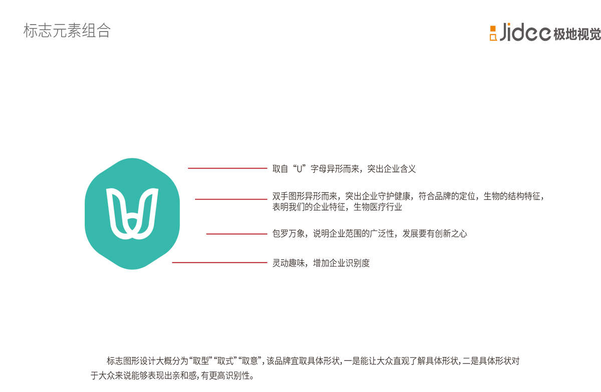 何健醫療logo 設計,取自“U”字母異形而來,突出企業含義