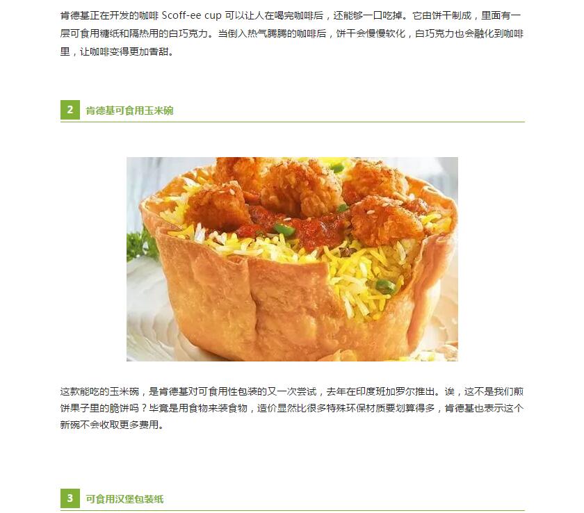 引言:這幾年因?yàn)榄h(huán)境污染太嚴(yán)重,生產(chǎn)制造商們都紛紛重視起了環(huán)保問題,可食用包裝已經(jīng)成為全球食品包裝行業(yè)的大事,也是未來的一大趨勢。