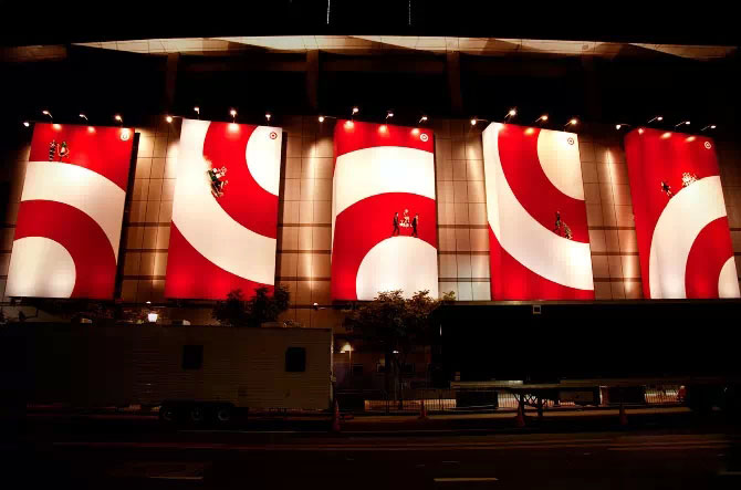 美國“塔吉特”超市的品牌標志圖形是“標靶”,輔助圖形截取和放大“標靶”的不同局部,形成更加鮮明醒目的品牌聯想效果。