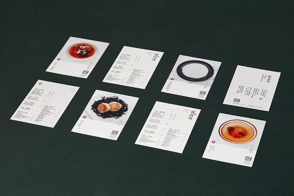 “從前慢”是一家滋補甜品店,主打傳統銀耳羹,LOGO選用極具文藝氣息的康熙字典體,旁邊一個小小的纂體“慢”字印章,輔助圖形也在“慢”字上進行延展。整套VI設計以黑白為主色調,無多余綴飾,風格簡潔婉約,為了配合文藝國風的調性,除菜單外的文字全部采用豎版排版。