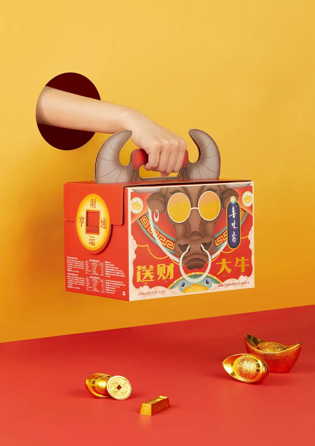 魯味齋是一個山東老字號鹵制品品牌,這款送財大牛禮盒,將牛年與財神結合,賦予了很濃厚的祝福愿景。