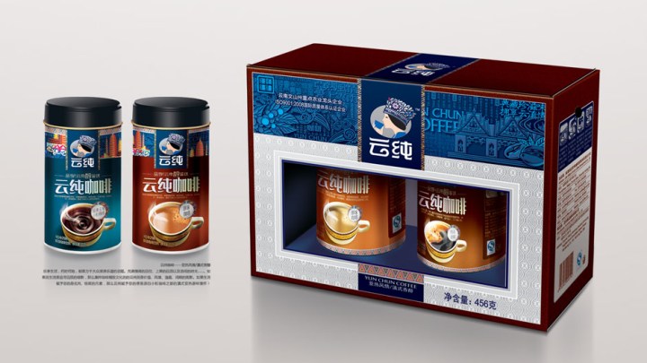 針對不同階層,我們將云純咖啡分為咖啡灌裝產品,小紙盒裝,焙炒咖啡豆、咖啡純粉及禮盒,為了展現出品牌的特性與風格,在包裝形象設計上導入云南當地濃郁的地方元素、少數民族風情以及咖啡元素,在第一印象中傳達出產品所具有的現代格調與民族氣息,強化云純品牌的高等價值。