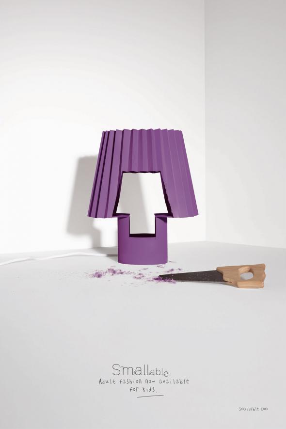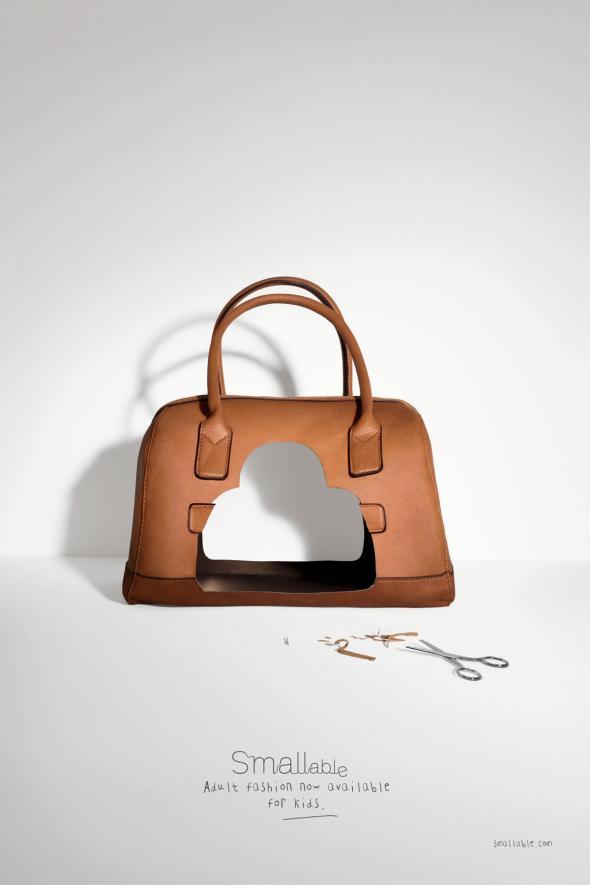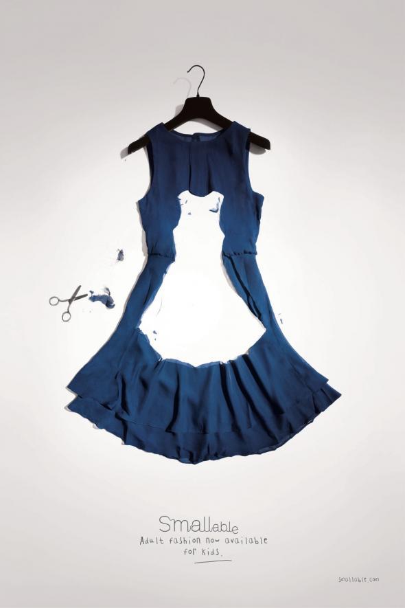 法國(guó)在線品牌Smallable,專門為孩子們提供超時(shí)尚的在線時(shí)裝及設(shè)計(jì)概念。這種直接在大人衣服上挖洞的形式,相當(dāng)直觀的表現(xiàn)了Idea:一樣時(shí)髦,只是Size不同。另外,裁剪的碎屑隨意的散落一旁,更體現(xiàn)了定制、量體裁衣的核心,不可謂不精妙~ 廣告