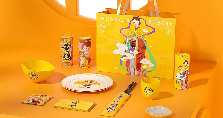 畫面中的黃娘身姿曼妙,做舞動姿態的黃娘綽約多姿,手持玉如意的黃娘端莊大方。而黃娘留下的最廣為流傳的是缽缽雞,所以為了加強黃娘與缽缽雞的聯系,繪制了黃娘手捧紅黃相間的瓷質龍紋的缽缽,接濟貧苦百姓,亦將缽缽作為仙家法器,做修行之用。一系列設計,創造了一個民眾熟悉又陌生的神話故事,品牌也因此有所依據,有所特長,形成獨有的辨識度和競爭力。