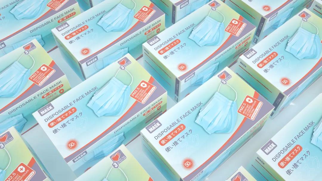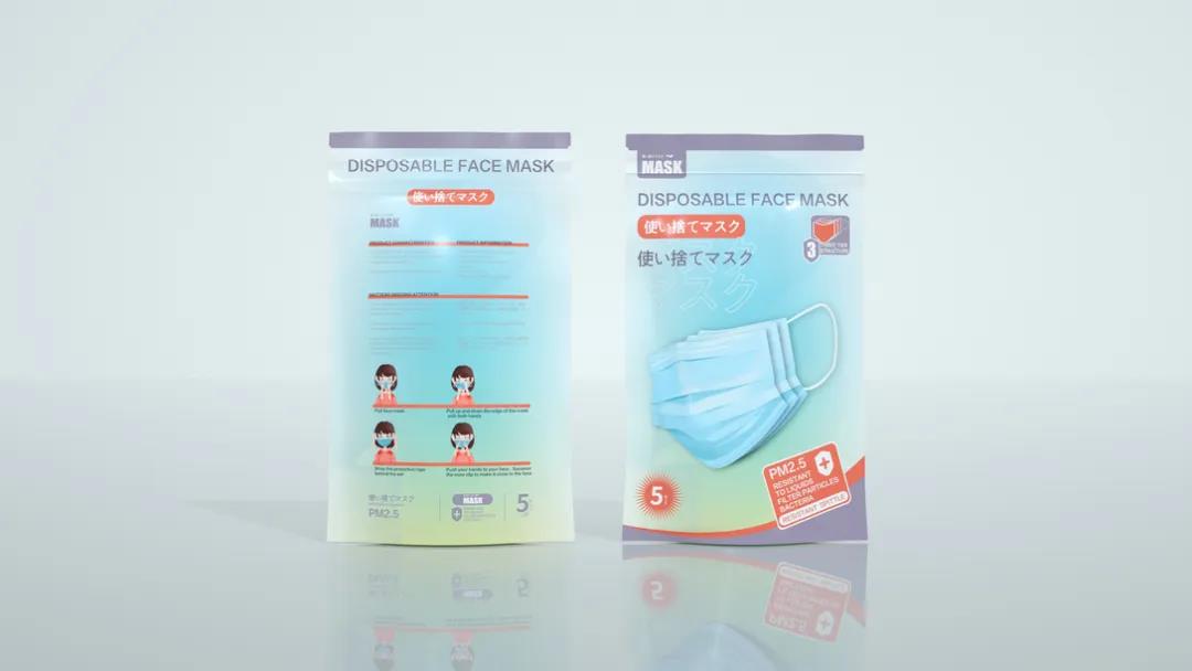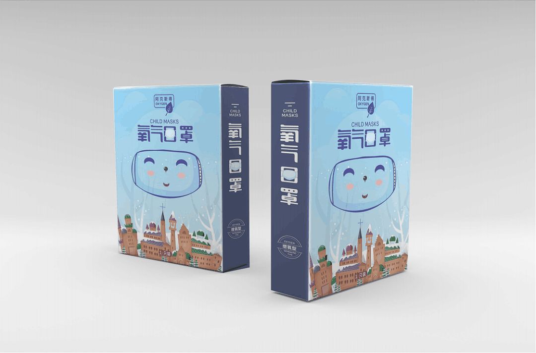 這款包裝較為清新簡(jiǎn)約,同樣使用漸變層次的設(shè)計(jì)豐富了包裝內(nèi)容,口罩的立體設(shè)計(jì)突出明了封面的文字,標(biāo)記采用不同顏色重點(diǎn)分明,消費(fèi)者可一目了然,滿足需求。