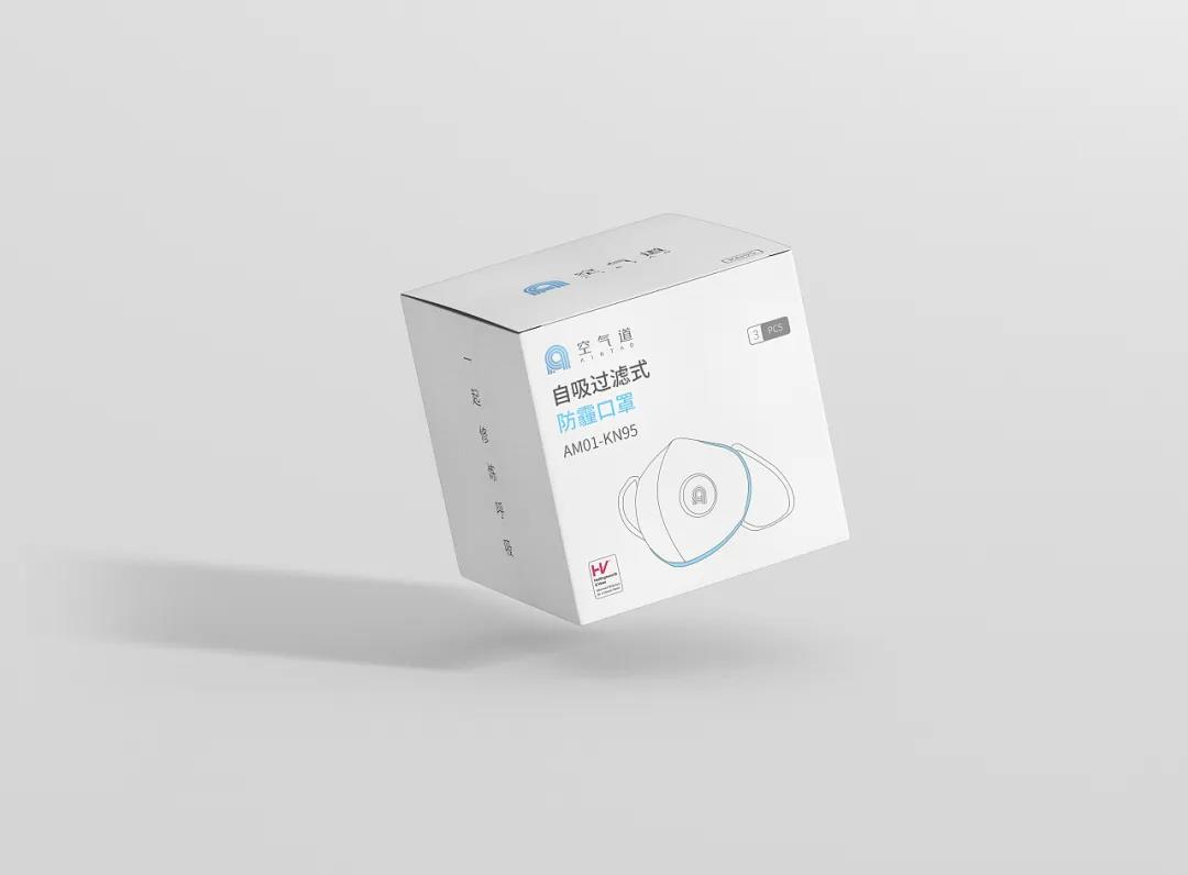 極簡(jiǎn)白的立體包裝,整體設(shè)計(jì)更加小而精致,正面插畫的口罩外觀形象直接簡(jiǎn)單,加入藍(lán)色描邊使口罩更有辨識(shí)度。