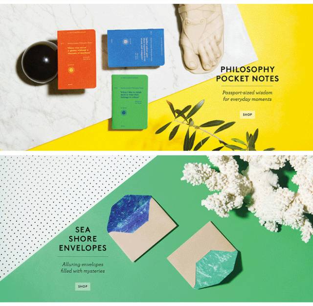 或是將不同顏色的系列商品擺放在一起,除能讓顧客更容易選擇商品外,這樣的設計方法比單件商品的擺放更顯突出與引起興趣,也讓顧客感受到品牌的貼心。