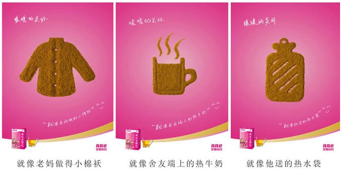 愛國之情、民族之情、社會之情、公益情感都是集體情感,廣告創(chuàng)意與實事的結合,不僅能夠引起注意,還能夠借機宣傳,起到更好的效果,比如奧運等社會事件;還可以運用民族元素、符號、特征等,不僅能夠增加親切感、拉近與用戶的距離,還能借助用戶熟悉的元素符號增強其對品牌的識別度。