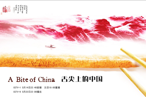 《舌尖上的中國》海報的確十分有創意,遠看是一雙筷子夾著一“臘肉”,近看發現“臘肉”其實是一幅山水畫。
