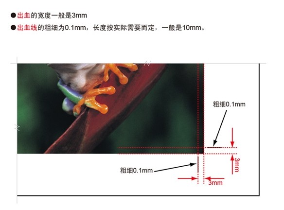 出血線是用來界定圖片或色地的哪些部分需要被裁切掉的線。(出血線以外的部分會在印刷品裝訂前被裁切掉。所以也叫裁切線。)