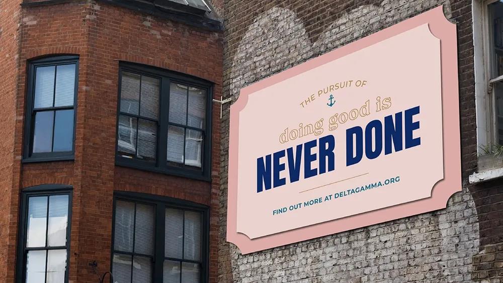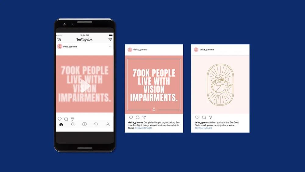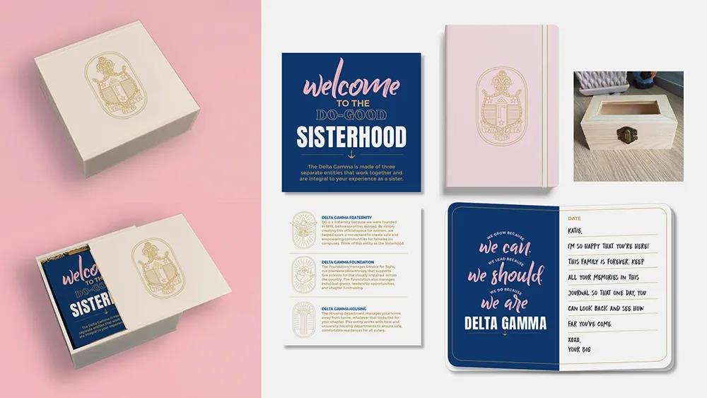 Delta Gamma成立于1873年,是美國最大的女生聯誼會之一,在152個學院分會和195個校友團體中擁有超過25萬名成員。1951年,她們創辦了一個非營利組織基金會,以支持籌款、贈款和獎學金,特別是幫助視力受損者和其他促進視力保護的組織。 她們推出了一個由俄亥俄州哥倫布市Ologie設計的LOGO設計。