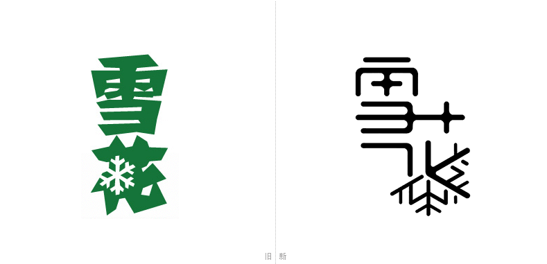 而此次隨新品牌推出的全新LOGO設(shè)計則更加時尚年輕。這也是主要為配合新品更加年輕化而量身定做的品牌LOGO設(shè)計。不過形式上還是由漢字“雪花”和天然雪花圖案組成。